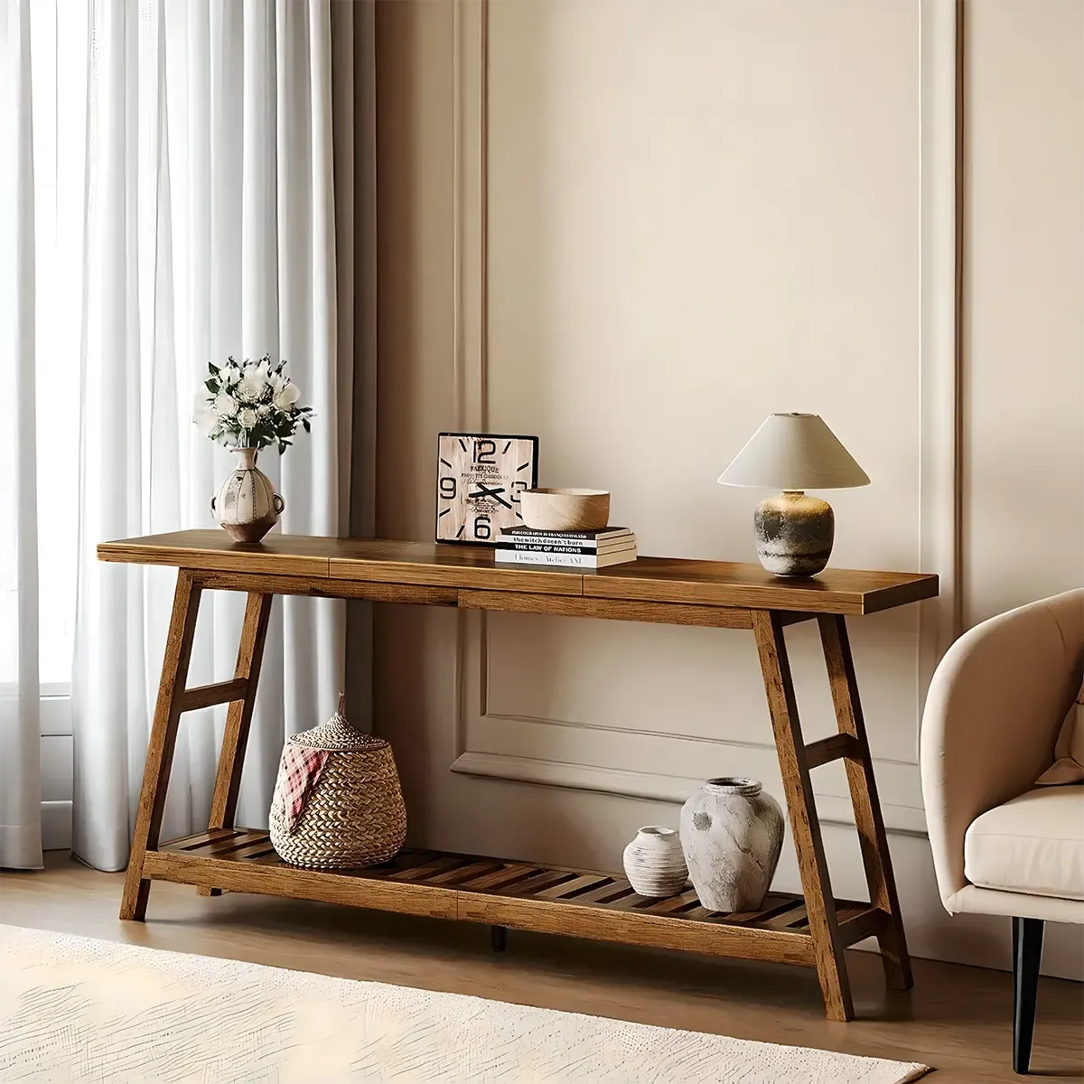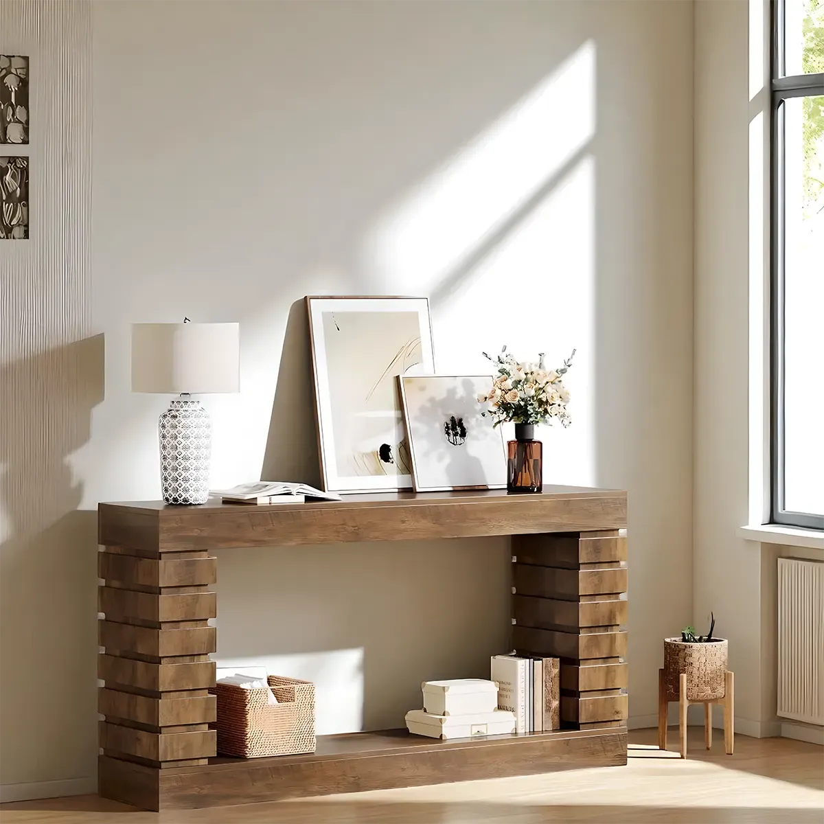 Slim Tree Branch Console Table With Wall Bookcase Display